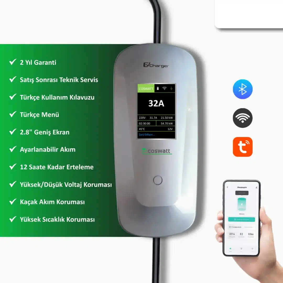 Türkiye ve Avrupa’da kullanılan tüm Tip-2 soketli elektrikli araba modelleri ile uyumludur.